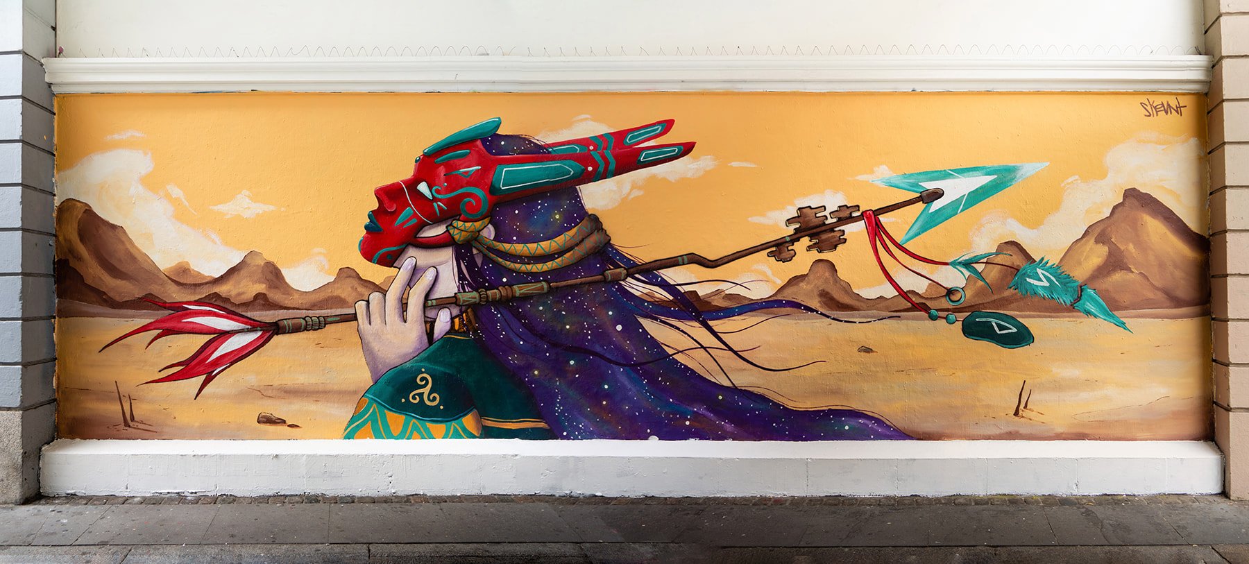 The mural invites viewers to contemplate their own journey of transformation. Its symbolic language explores the interplay of challenge, choice, and renewal, encouraging reflection on the continuous path of self-discovery and balance. Each element, mask, runes, key-arrow, and Triskel, acts as a guide for introspection and personal evolution.